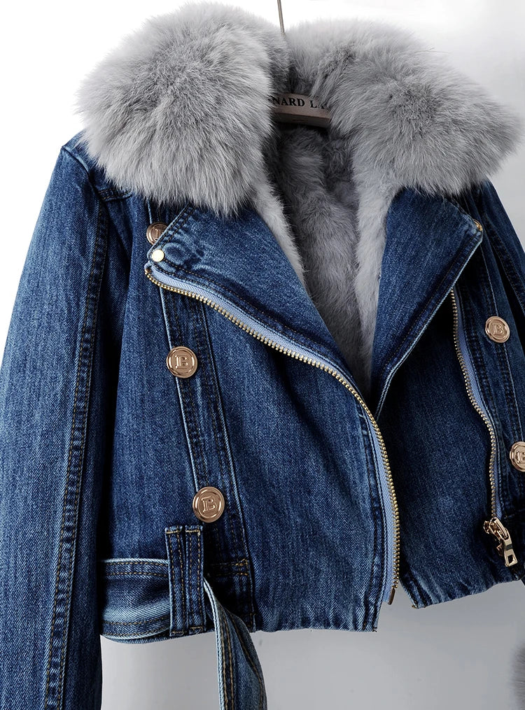 Stijlvol Denim Design: Dit jasje heeft een eigentijdse uitstraling dankzij het denim ontwerp, wat het een tijdloos stuk maakt. De toevoeging van het nepbont aan de binnenkant, kraag en mouwen geeft een verfijnde touch aan het klassieke denimjasje.