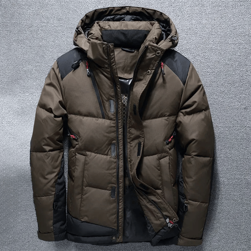 Een robuust alpien beest dat doelbewust is gebouwd om te gedijen in extreme kou en bar weer, deze stevige donsjas excelleert in het bestrijden van de elementen met zijn krachtige isolatie en ondoordringbare warmte.