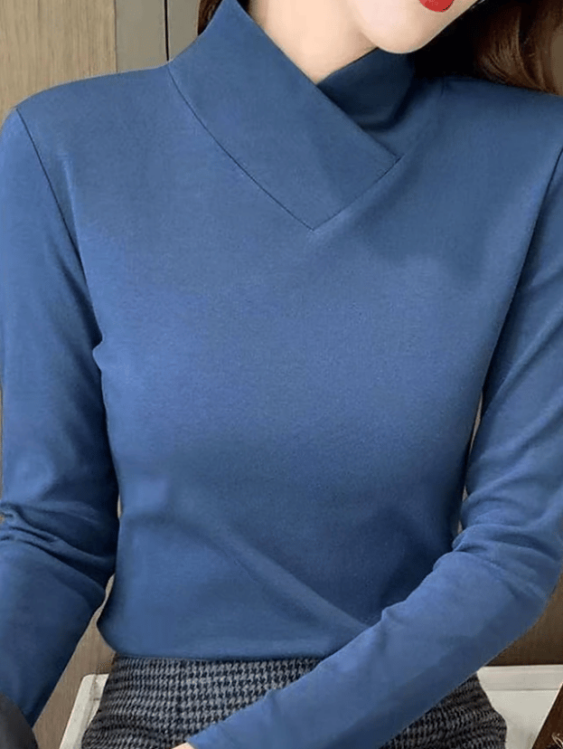 Abbiamo realizzato questo top a maniche lunghe con un raffinato collo alto che si apre delicatamente in una sottile V, portando un tocco moderno e femminile a una silhouette calma e raffinata. Il morbido misto cotone si adagia dolcemente sulla pelle e mantiene la sua forma ordinata dalla mattina alla sera.