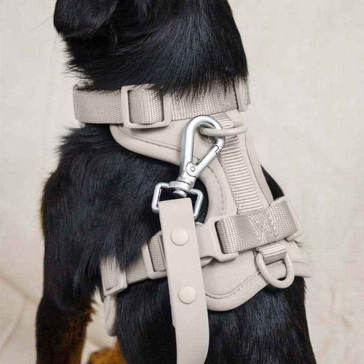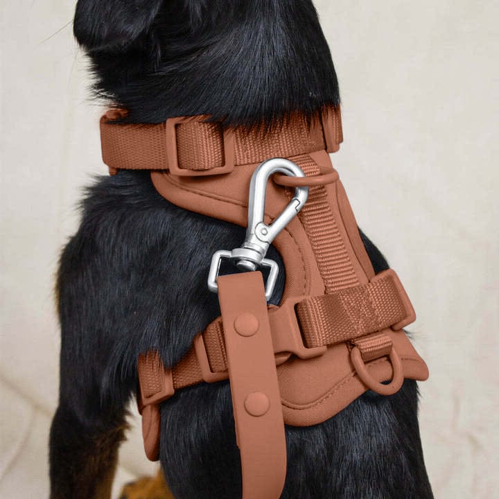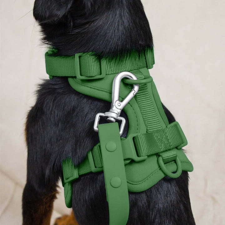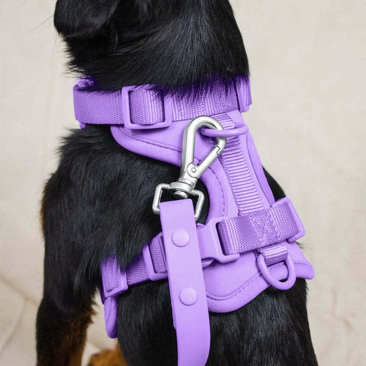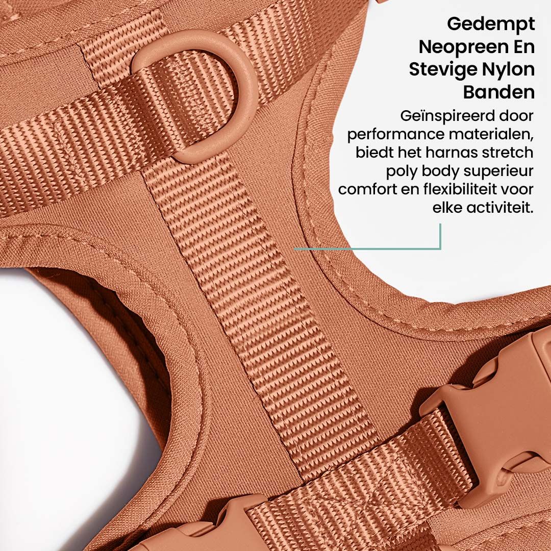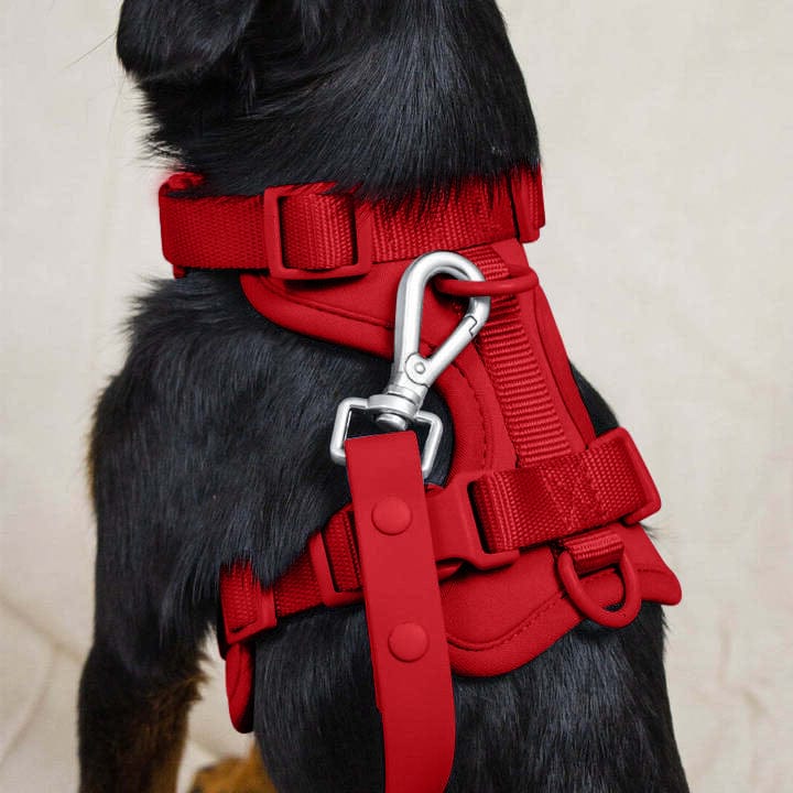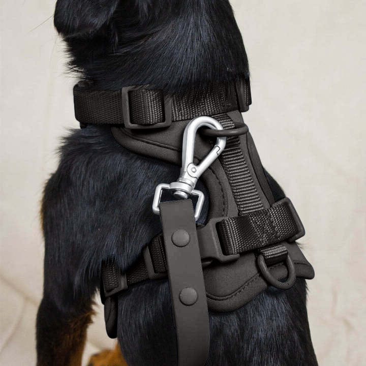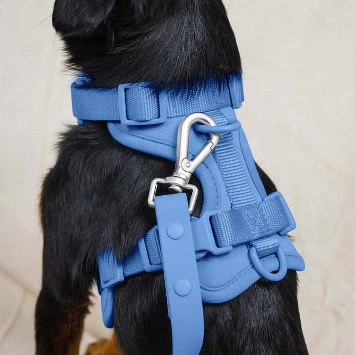 - Materiaal harnas: Zachte stretch neopreen poly basis, geweven nylon banden, gecoate koolstofstaal D-ringen.